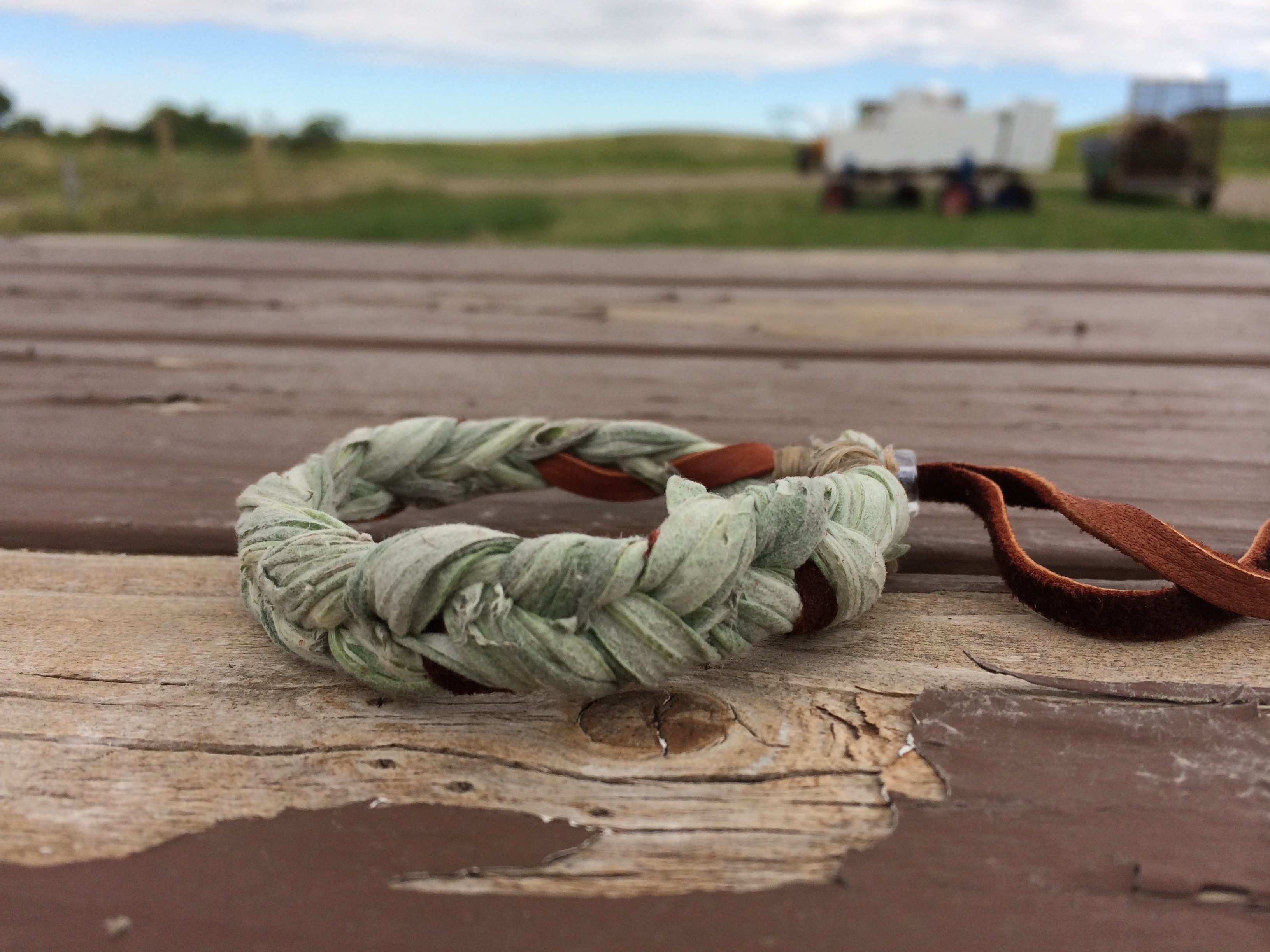 Given our desire to use a sustainable, natural product, one that grows abundantly on the reservation, we thought sage was a good choice. However when we realized the issues of choosing a seasonal plant for a product we want to sell year-round, we brainstormed and found sweet-grass to be a viable alternative. Unlike sage, sweet-grass can be re-wetted and therefore does not limit us to strict time parameters.